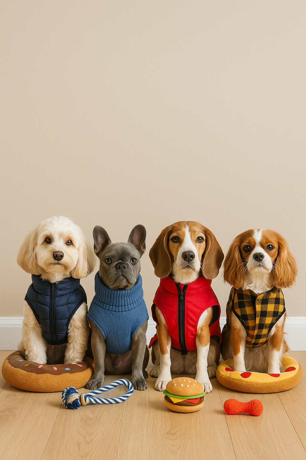 Fun Plush Squeaky Dog Toys – Durable Chew Set (Ice Cream, Fries & Burger